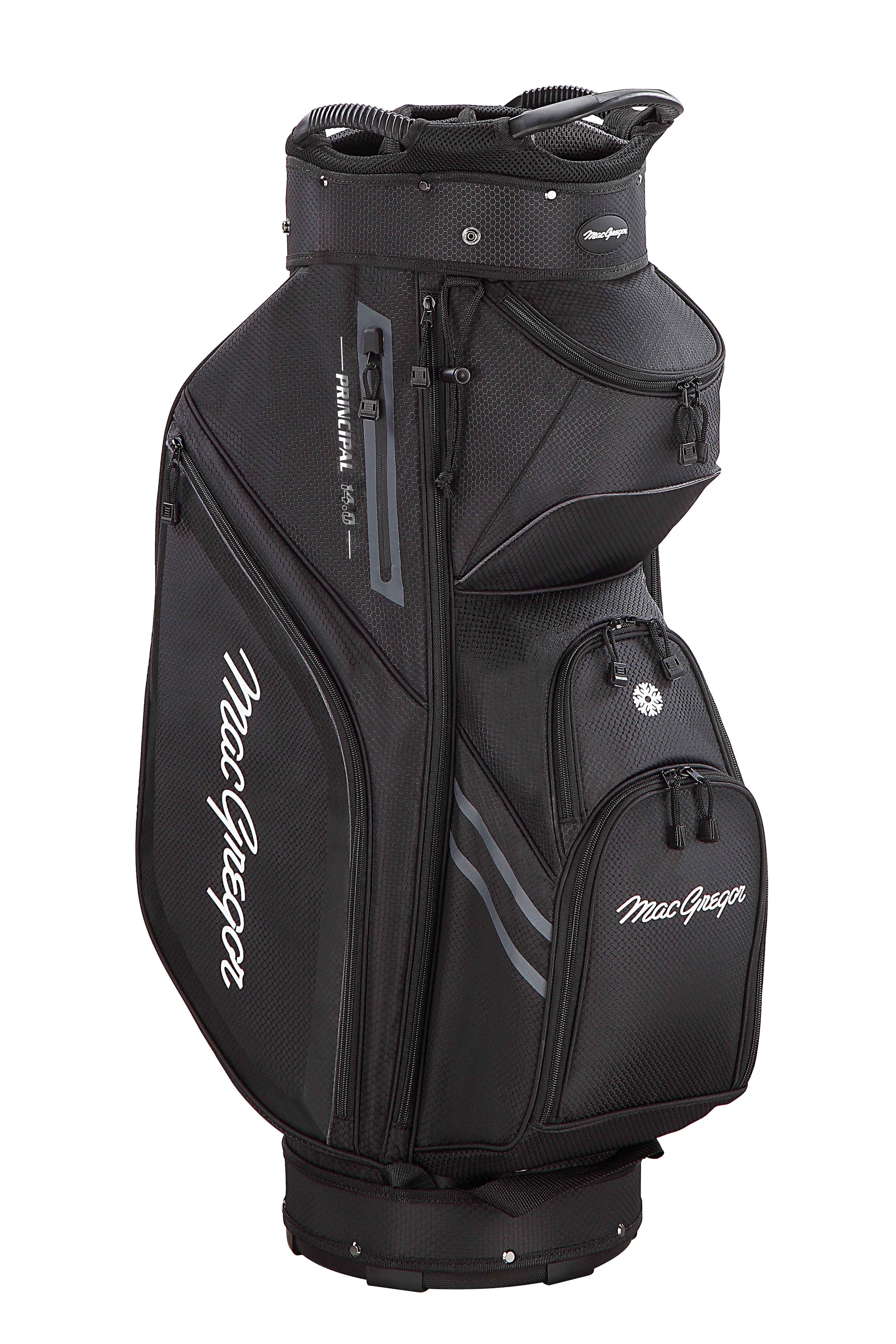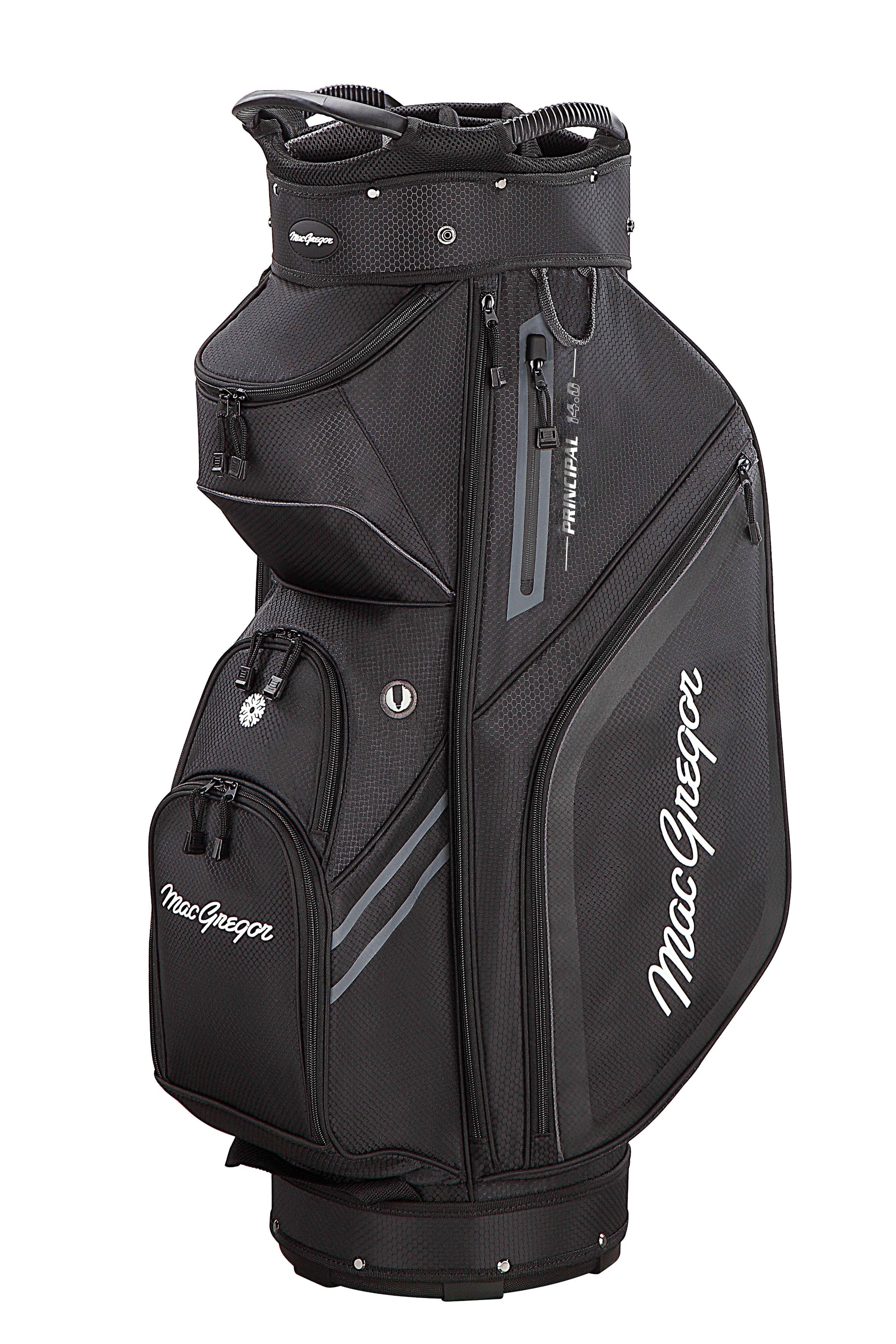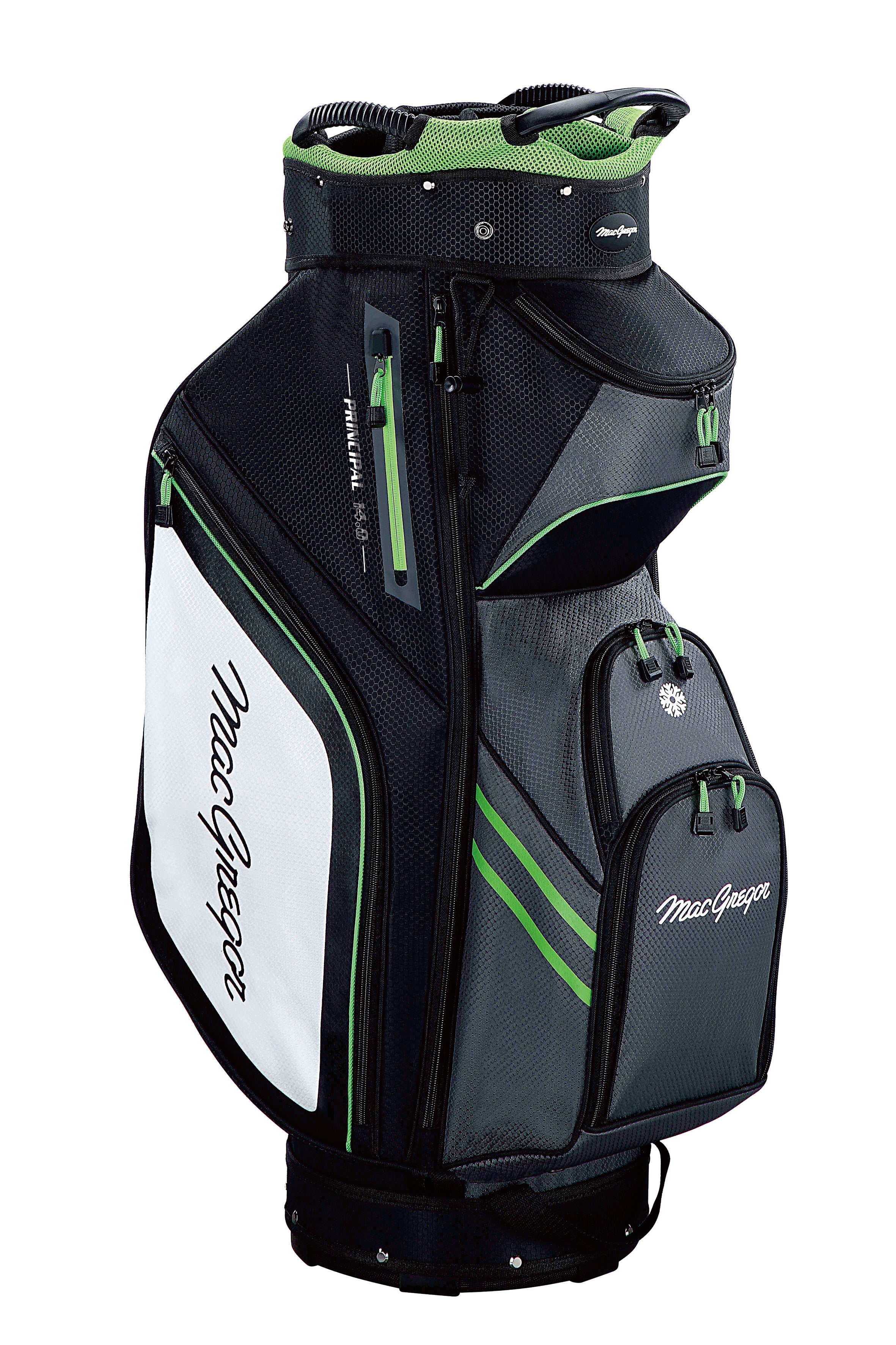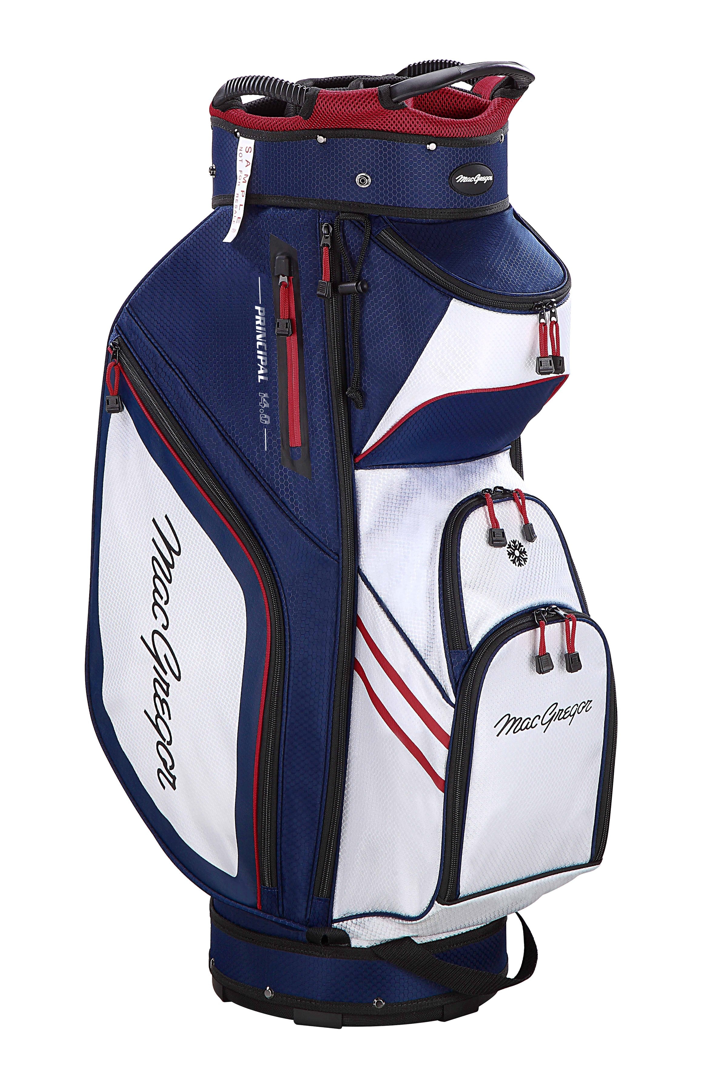 The best cart bags should give a golfer a place for everything, and this fantastic addition to the MacGregor range does that with space to spare. A 10", 14-way top with 3 integrated grab handles combines with 3 full length dividers to make the organization of clubs a breeze. With 9 strategically placed pockets including seamless velour-lined valuable pocket, even the best equipped golfer will have a spot for everything, while the design of all pockets being forward facing, simplifies access and makes every pocket useful. Neat features such as umbrella loop. Pen holder, extra-large travel and rain hood and a padded shoulder strap complete the functionality. 3 stylish colour combinations and the iconic MacGregor logo as sported by Major winners through the years mean this superb cart bag looks as great as it plays.